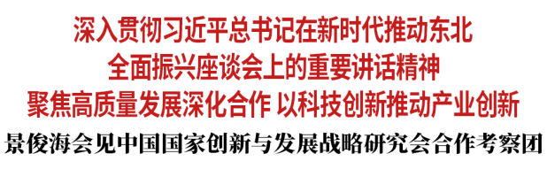景俊海首先向合作考察团一行到访表示热烈欢迎。他说,习近平总书记始终心系东北、关注吉林,在东北振兴战略实施20周年重要节点,主持召开新时代推动东北全面振兴座谈会并发表重要讲话,殷殷嘱托中饱含着对东北人民的深情厚谊、蕴含着对东北全面振兴的期盼期许。我们一定把习近平总书记重要讲话精神转化为感恩奋进力量,努力走出一条高质量发展、可持续振兴的新路子。希望中国国家创新与发展战略研究会和各位企业家紧紧抓住时代机遇,聚焦吉林全面实施“一主六双”高质量发展战略,深化在重点产业、重点领域的创新合作,支持吉林以科技创新推动产业创新,促进“六新产业”发展、“四新设施”建设取得扎实成效,为吉林构建具有特色优势的现代化产业体系贡献更大力量。
