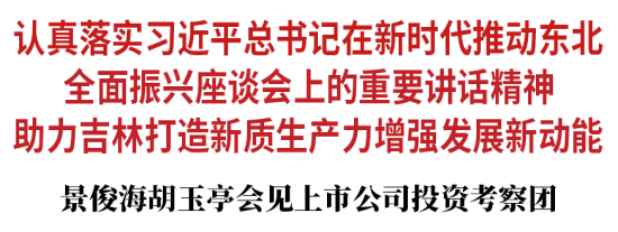 徐胜广等投资考察团成员一致表示,对吉林全面振兴充满信心,将推动上市公司产业资本优势与吉林资源禀赋紧密结合,促进项目、资金、技术、人才等向吉林集聚,为吉林高质量发展和现代化建设贡献更大力量。