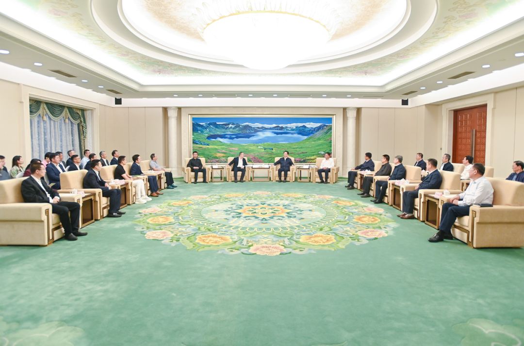 景俊海、胡玉亭首先向投资考察团到访表示热烈欢迎。景俊海说,习近平总书记对吉林振兴发展寄予厚望,党的十八大以来三次亲临吉林视察,近日又主持召开新时代推动东北全面振兴座谈会,为我们把脉定向、打气鼓劲。我们一定把习近平总书记的关心关怀之情转化为砥砺奋进之力,加快走出高质量发展、可持续振兴新路。希望各位企业家把握机遇、抢先布局,加强与吉林省在新能源、医药健康、数字经济、现代文旅等重点领域合作,持续深耕吉林市场,投资建设重大项目,把更多新兴业态模式、先进技术理念引入吉林,助力吉林打造新质生产力、增强发展新动能,更好地推动科教和产业优势转化为发展优势。