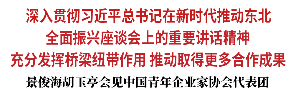 景俊海、胡玉亭首先向潘刚一行前来参加中国青年企业家促进吉林振兴发展大会表示热烈欢迎。景俊海说,中国青年企业家协会是促进经济社会高质量发展的重要生力军,是推动吉林振兴发展的重要合作伙伴。前不久,习近平总书记主持召开新时代推动东北全面振兴座谈会并发表重要讲话,深刻阐述了东北发展蕴含的优势潜力、面临的重大机遇,为我们重振雄风、再创佳绩注入了坚定信心和强大动力。希望中国青年企业家协会深入学习领会习近平总书记重要讲话精神,充分发挥桥梁纽带作用,引导广大青年企业家进一步加强与吉林合作。希望各位青年企业家持续深耕吉林市场,不断优化投资布局,把更多市场资源、优质项目、一流人才、先进技术引入吉林。我们将持续优化营商环境,为广大青年企业家施展才华、成就事业搭建广阔舞台。