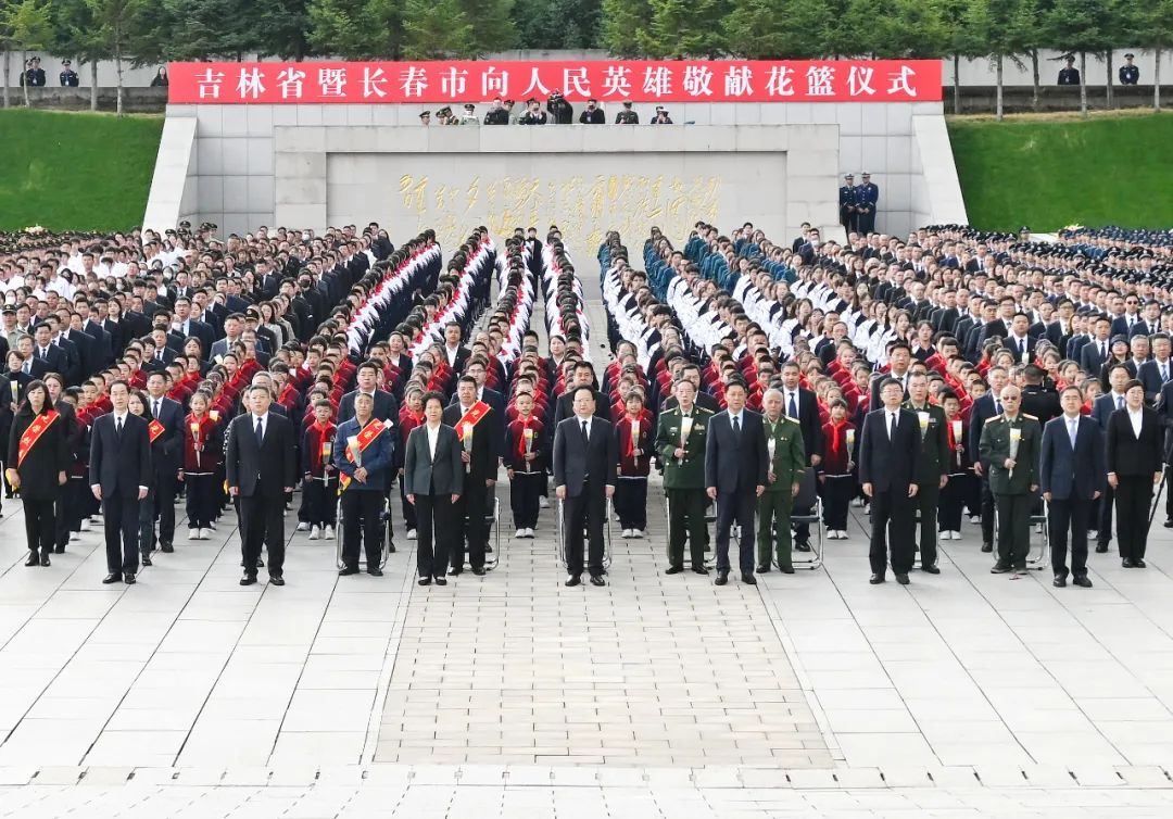 在长省委常委,省人大常委会、省政府、省政协和长春市领导,省检察院领导,省军区、武警吉林省总队、空军航空大学领导,省直有关部门负责同志,以及老战士、老同志、烈士亲属代表,党政机关干部、学校师生、警校学员、部队官兵、消防救援队伍、社会各界群众代表参加敬献花篮仪式。