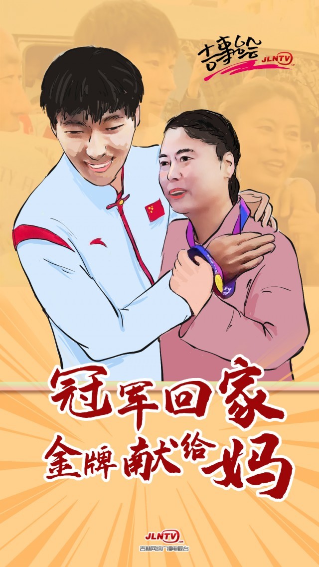 10月5日,陈佳鹏回到家乡四平,下车第一件事就是把自己千辛万苦获得的金牌给妈妈戴上。陈佳鹏妈妈说:“我们这个大男孩是一个暖男。”