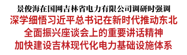 在充分肯定国网吉林省电力有限公司工作后,景俊海强调,推动吉林高质量发展、可持续振兴,需要加快发展新能源、努力走出新路子。希望国网吉林省电力有限公司坚持以习近平总书记重要讲话重要指示精神为指引,加快论证和建设新型电网和电力外送通道,助力吉林新能源资源优势转变为发展优势、竞争优势。要全力加快电网升级,全面参与“陆上风光三峡”“山水蓄能三峡”“吉电入京”特高压通道等重大工程建设,加速建设“四横四纵”输电通道,进一步提升电力“东西互济”和“北电南送”能力。要全力助推绿色转型,促进新能源以更大规模、更高比例接入电网,配合做好新能源产业“绿电+消纳”试点创建工作,不断提升新能源消纳水平。要全力深化科技创新,进一步提高电网调节能力和利用效率。要全力服务经济发展,顺应转型数字化、服务智能化、社会共享化、产业高级化趋势,持续优化营商环境,更好满足重大项目建设用电需要,有力支持吉林产业转型升级。要全力保障电力供应,高质量重建受灾地区电力设施,持续提升电网防灾抗灾能力,扎实做好迎峰准备,确保群众温暖过冬。