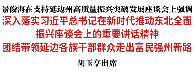 在充分肯定延边州工作后,景俊海强调,延边生态资源富集,区位优势突出,蕴含着巨大发展潜力。一要全面践行习近平总书记殷殷嘱托,争做促进民族团结进步、推动高质量发展、维护边疆稳固、实现人民幸福安康的示范标兵,真正在吉林全面振兴中找准定位、干在实处、走在前列。二要全面夯实发展根基,进一步发挥优势、彰显特色,科学规划发展布局,加快产业转型升级,做强做大医药健康产业,做优做活农林特色产业,做精做美边境文旅产业,突出抓好一批重大项目建设,打造规模化、集群化、品牌化的现代化产业体系。三要全面融入共建“一带一路”,加强互联互通,推进借港出海,充分发挥开放平台作用,大力发展面向东北亚地区的对外贸易,持续深化与宁波对口合作,以高水平开放推动高质量发展。四要全面放大生态优势,坚定不移走生态优先、绿色发展之路,深入打好污染防治攻坚战,筑牢国家生态安全屏障,促进生产生活绿色转型,持续汇聚绿色低碳发展新动能。五要全面加强边疆建设,铸牢中华民族共同体意识,巩固民族团结进步良好局面,扎实推进兴边富民、稳边固边。