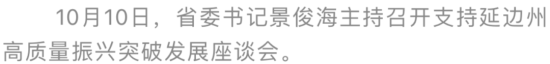 结合开展第二批主题教育,按照省党政领导班子集中深入市(州)开展“察实情、出实招、办实事”活动安排,10月10日,省委书记景俊海率领省党政领导班子到延边,主持召开支持延边州高质量振兴突破发展座谈会,听取情况、了解需求,研究支持发展、解决问题的具体举措。景俊海强调,要深入落实习近平总书记在新时代推动东北全面振兴座谈会上的重要讲话精神,牢记嘱托、坚定信心、实干拼搏,团结带领延边各族干部群众走出富民强州新路。省委副书记、省长胡玉亭出席会议。