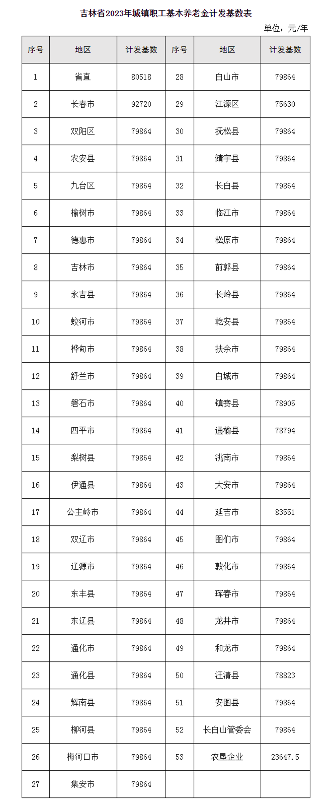 附件:吉林省2023年城镇职工基本养老金计发基数表