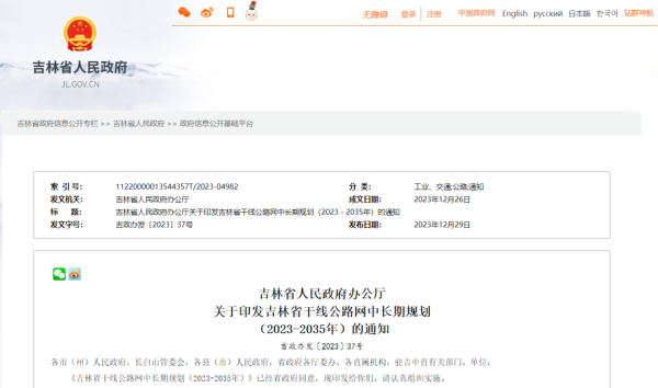点击查看原文>>吉林省人民政府办公厅关于印发吉林省干线公路网中长期规划(2023-2035年)的通知