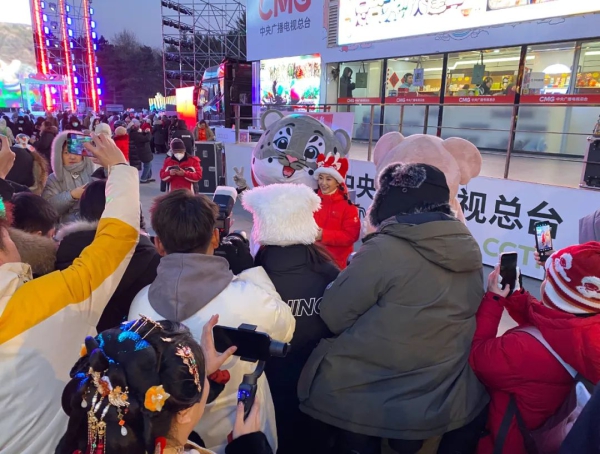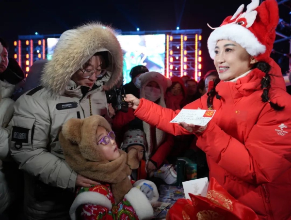 红彤彤的总台“春碗”热情装点了银装素裹的冰雪之城。