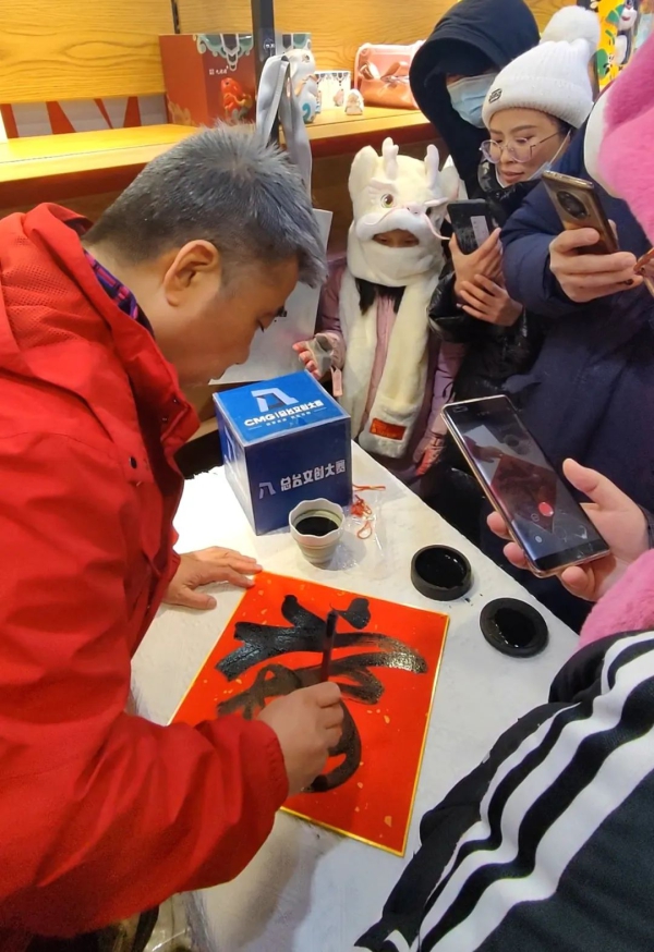 泼墨挥毫,“福”气来到。总台书法家在文创大篷车中现场挥毫,书写了一幅幅“福”字赠送给热情的游客们。对文创大篷车产生浓厚兴趣的小朋友们,也在转播车积木系列前好奇驻足、充满遐想。