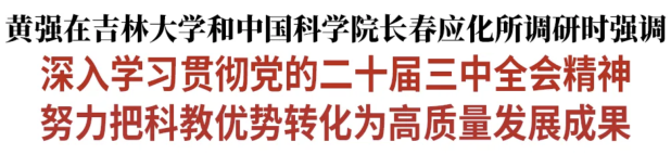 调研中,黄强对吉林大学、中国科学院长春应化所为吉林各项事业发展作出的贡献表示感谢,希望他们大力弘扬科学家精神、教育家精神,推出更多科研成果,培养更多优秀人才,为国家高质量发展和现代化建设、吉林全面振兴率先突破提供有力支撑。黄强强调,推动吉林高质量发展,关键要把科教资源整合好、把科教优势发挥好。要小切口破题、大纵深发力,打通束缚新质生产力发展的堵点卡点。要充分发挥新型举国体制优势,集聚用好国家战略科技力量。要进一步强化企业主体地位,推动科技创新和产业创新深度融合,让更多科研成果变成产业成品和发展结果。要尽快完善科研成果转化利益回报机制,充分调动广大科研人员积极性,助力提升创新体系整体效能。