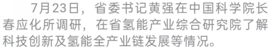 在中国科学院长春应化所,黄强详细了解发展历史沿革、基地平台建设等情况,强调要始终坚持“四个面向”“四个率先”,用改革精神推动科技创新,打好关键核心技术攻坚战,让更多科研成果实现产业化应用。黄强来到省氢能产业综合研究院,要求超常规、最大力度、精准支持氢能全产业链发展,坚持政府支持和市场行为联动,持续强化场景牵引功能,动员社会力量广泛参与,切实以政府更大作为激发市场无限活力。