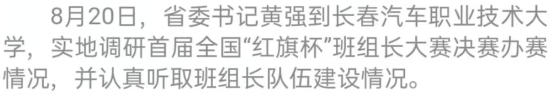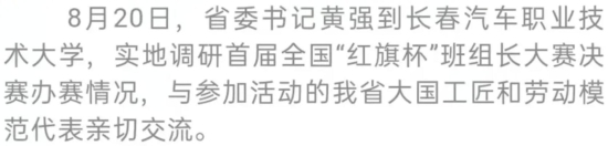 今天(8月20日),省委书记黄强到长春汽车职业技术大学,实地调研首届全国“红旗杯”班组长大赛决赛办赛情况。他强调,要把办好这次比赛作为贯彻落实党的二十届三中全会精神的实际行动,大力弘扬劳模精神、劳动精神、工匠精神,持续激励广大职工用奋斗成就梦想,真正让创新源泉充分涌流、创造活力持续迸发,更好以改革驱动创新、以创新引领发展。
