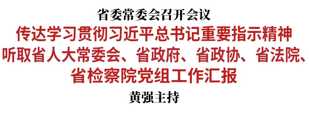 今天(1月22日),省委书记黄强主持召开省委常委会会议,传达学习习近平总书记近期重要指示和中央有关会议精神,研究我省贯彻落实举措;传达学习1月9日中共中央政治局常务委员会会议、1月20日中共中央政治局会议精神,听取省人大常委会、省政府、省政协、省法院、省检察院党组2024年工作汇报,研究部署今年工作。