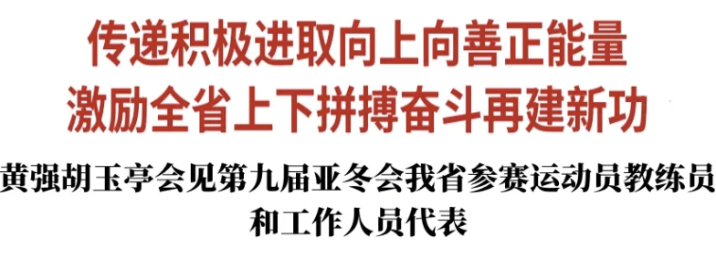 哈尔滨第九届亚洲冬季运动会2月14日落下帷幕,中国体育代表团共夺得32金、27银、26铜,其中我省运动员斩获9枚金牌、5枚银牌、6枚铜牌。2月15日,省委书记黄强,省委副书记、省长胡玉亭在长春会见载誉归来的我省参赛运动员、教练员和工作人员代表。