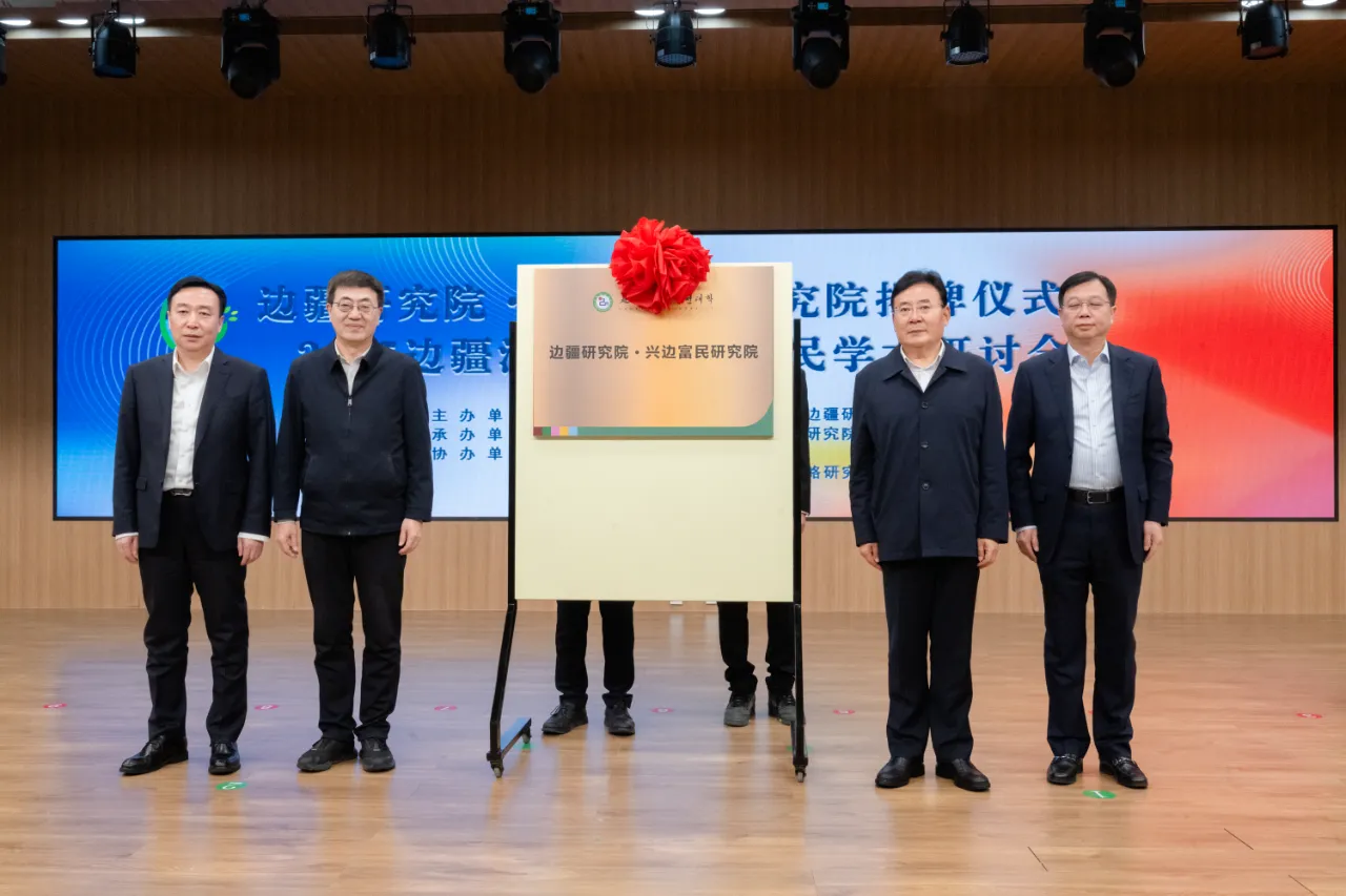 9时25分许,在热烈掌声中,胡家福、李国强、冯庆忠、杜锐共同为延边大学边疆研究院·兴边富民研究院揭牌。