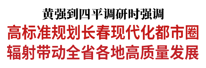 4月16日,省委书记黄强到四平调研。他强调,要坚决把思想和行动统一到习近平总书记在听取吉林省委和省政府工作汇报时的重要讲话精神上来,思路放宽一些,胆子再大一些,高标准规划长春现代化都市圈,强力拉动圈内城市高质量发展、大力带动全省各地高质量发展。