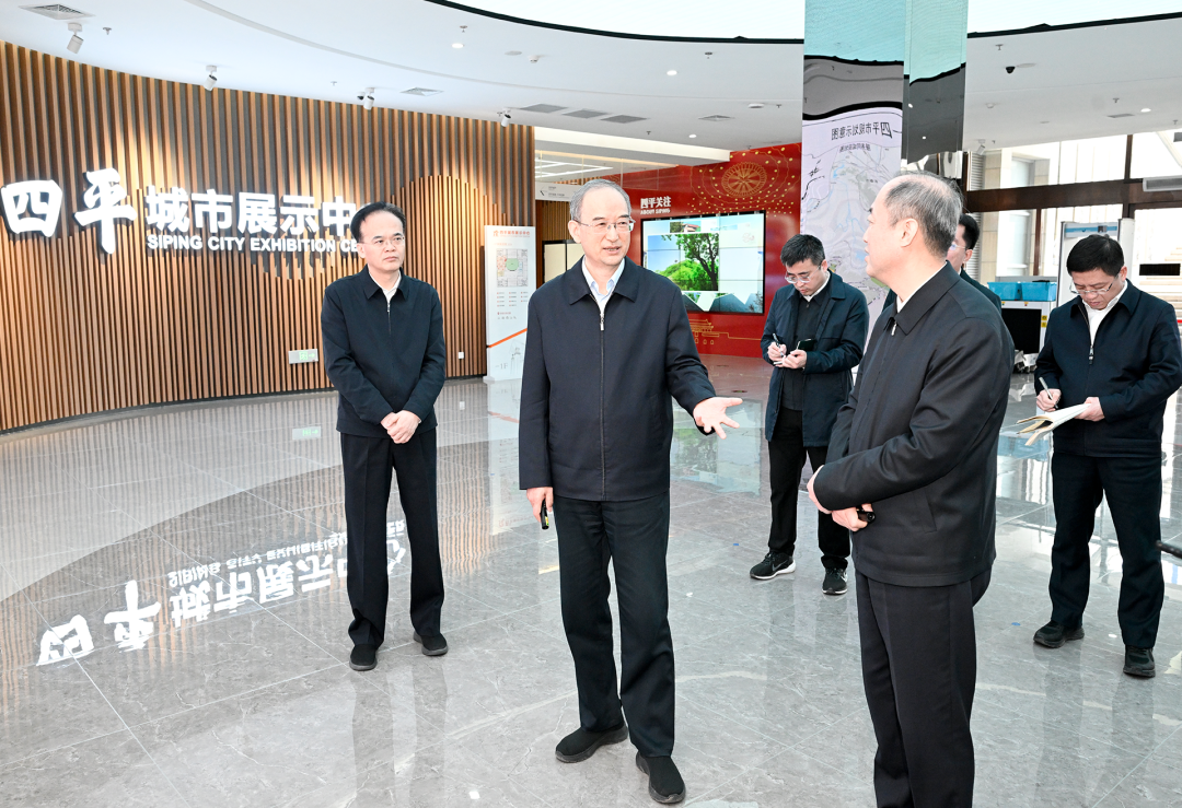 4月16日,省委书记黄强到四平调研,在四平城市展示中心听取四平融入长春现代化都市圈的规划思路。