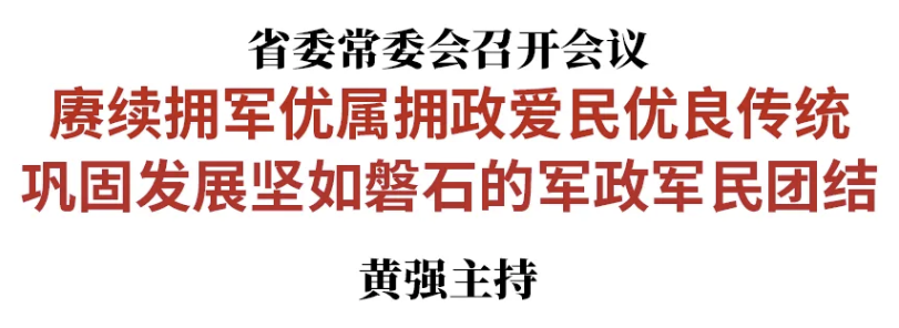 4月25日,省委书记黄强主持召开省委常委会会议,传达学习习近平总书记对双拥工作作出的重要指示和全国双拥模范城(县)命名大会精神,研究我省贯彻落实举措。