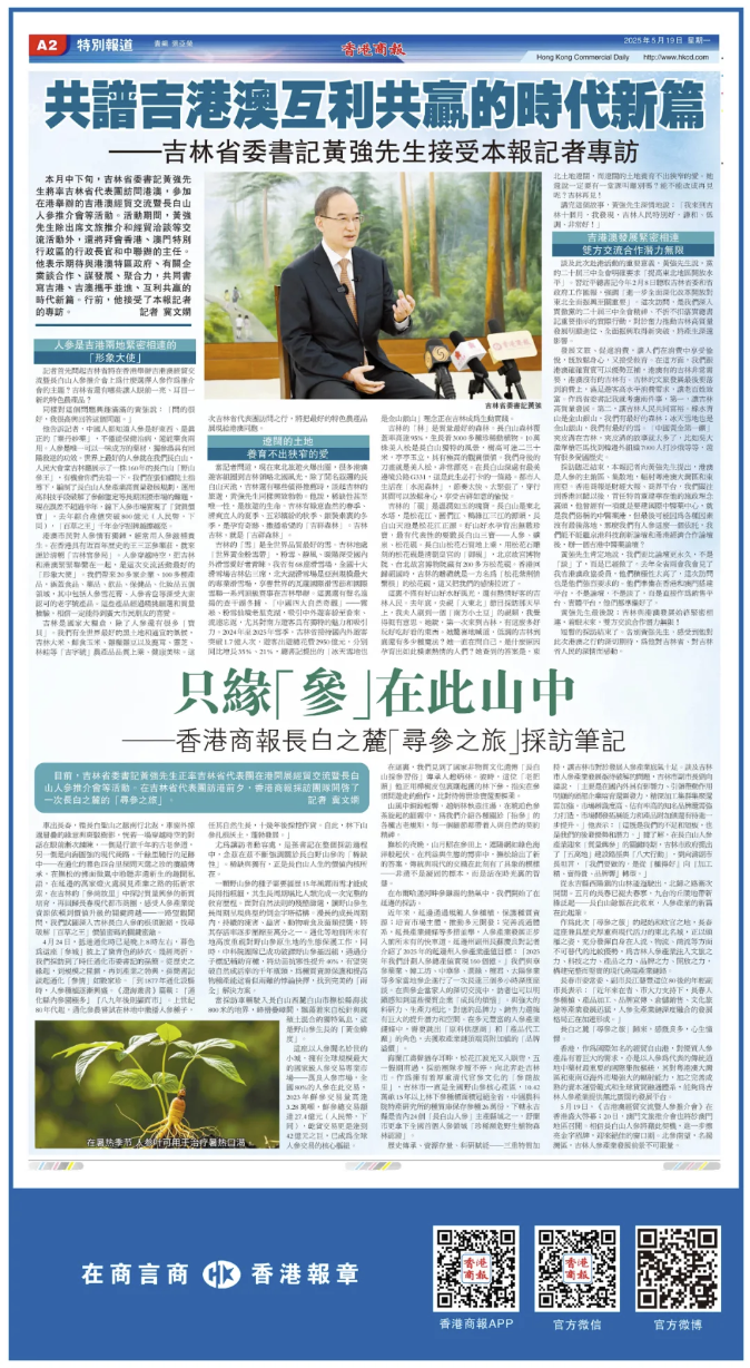 原文标题:共谱吉港澳互利共赢的时代新篇——吉林省委书记黄强先生接受本报记者专访