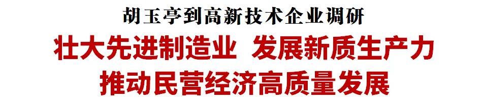 6月9日,省委副书记、省长胡玉亭到部分高新技术企业调研。他强调,要深入学习贯彻习近平总书记在听取吉林省委和省政府工作汇报时的重要讲话精神,坚定落实“两个毫不动摇”“三个没有变”,着力稳工业、稳企业、稳预期,推动民营经济高质量发展,培育壮大先进制造业集群,因地制宜发展新质生产力,为吉林高质量发展明显进位塑造新动能新优势。王子联、刘伟参加调研。