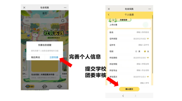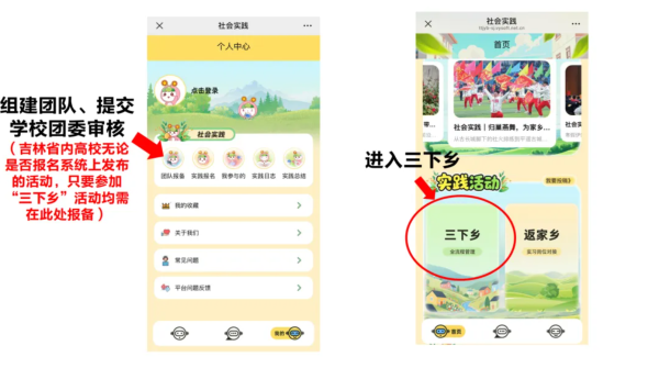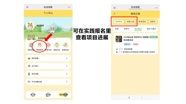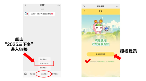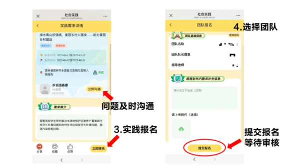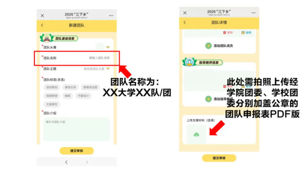各高校团委积极宣传动员,组织学生通过“创青春”微信公众号“2025三下乡”小程序报名(报备),提交《实践活动申报表》(附件1)。主办单位对各高校推报的实践团队进行审核,确定入选团队,实践团队可在系统后台查看审核进度。适时举办活动出征仪式。