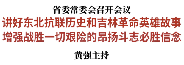会议指出,习近平总书记在中央政治局常委会会议上听取中国人民抗日战争暨世界反法西斯战争胜利80周年纪念活动总结报告时的重要讲话,阐明了纪念活动的重大意义和深远影响,对用好活动成果提出明确要求,要深刻学习领悟、不折不扣落实。今年以来,我们成功圆满举办了迎接“杨靖宇支队”战旗仪式、空军航空开放活动和长春航空展等一系列标志性纪念活动,提振了干部精气神,增强了群众自信心,取得了很好的政治效果和社会效果,对参与活动筹办的全体单位和工作人员提出表扬。下一步,要认真做好总结复盘,慎终如始办好后续活动,继续挖掘利用我省红色资源,突出讲好东北抗联历史和吉林革命英雄故事,教育引导干部群众铸就坚如磐石的理想、信念、信仰,增强战胜一切艰险的昂扬斗志、必胜信念,奋力推动吉林全面振兴和高质量发展。
