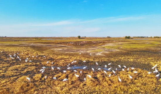 今年春季,莫莫格湿地迎来白鹤停歇时长达61天,超多年平均水平,进一步印证了湿地栖息环境的持续优化。保护区内纵横交错的江河泡沼孕育了丰富植被,不仅为白鹤提供了喜爱的藨草根茎,也为东方白鹳等鸟类准备了充足的鱼虾、螃蟹等食物。