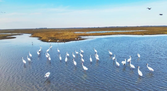 白鹤作为国家一级保护动物、世界极危物种,其迁徙动态直接反映湿地生态质量。