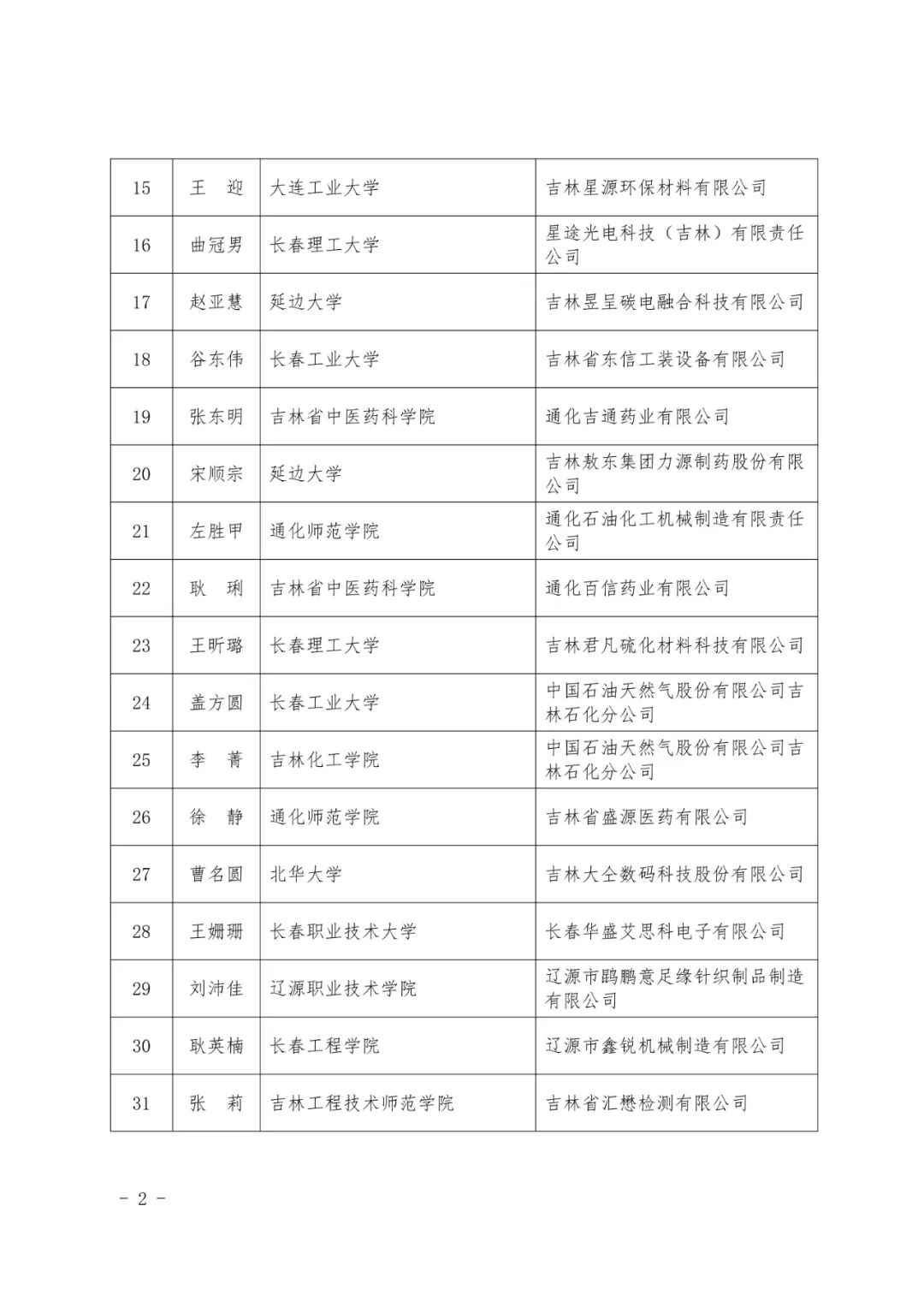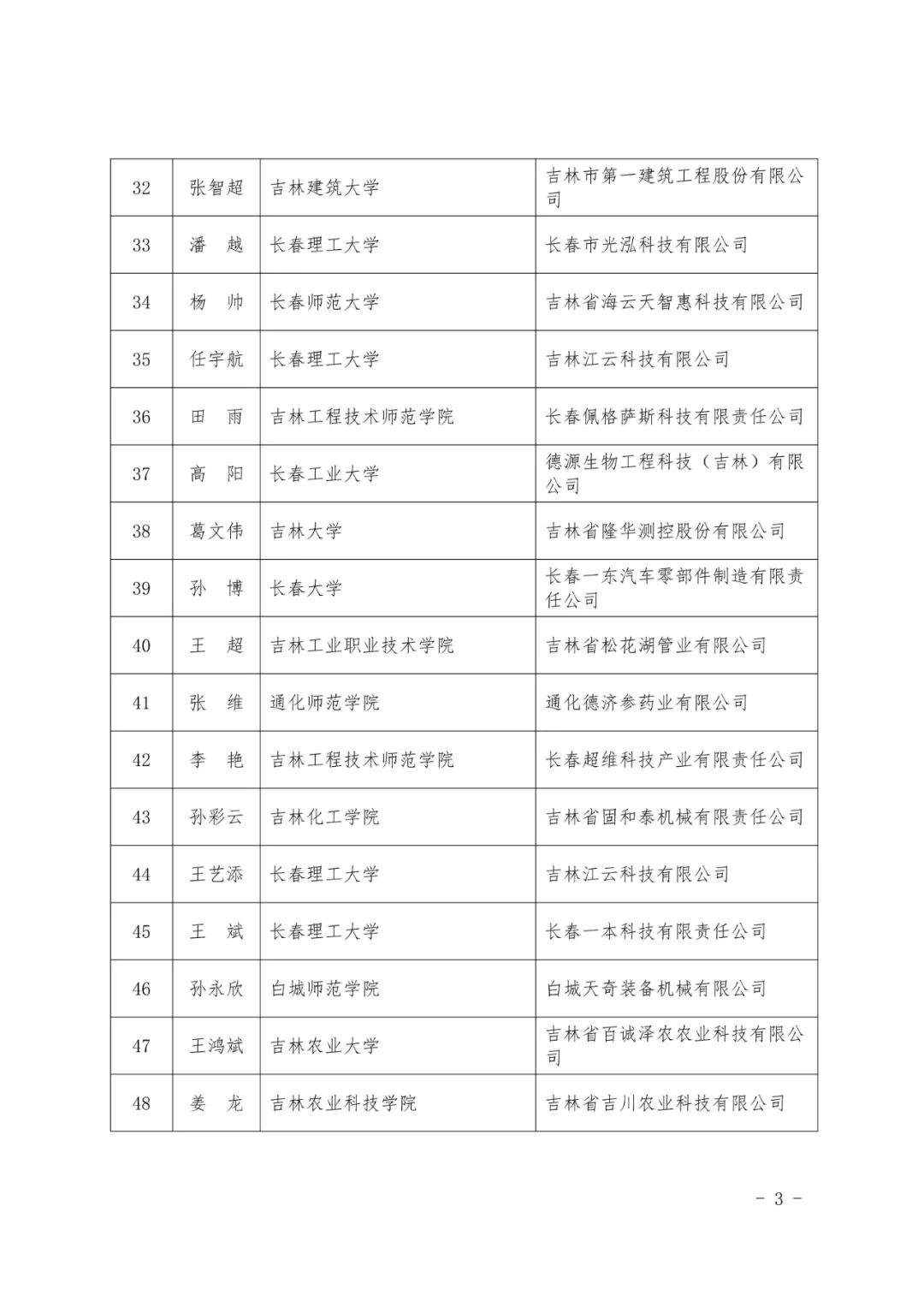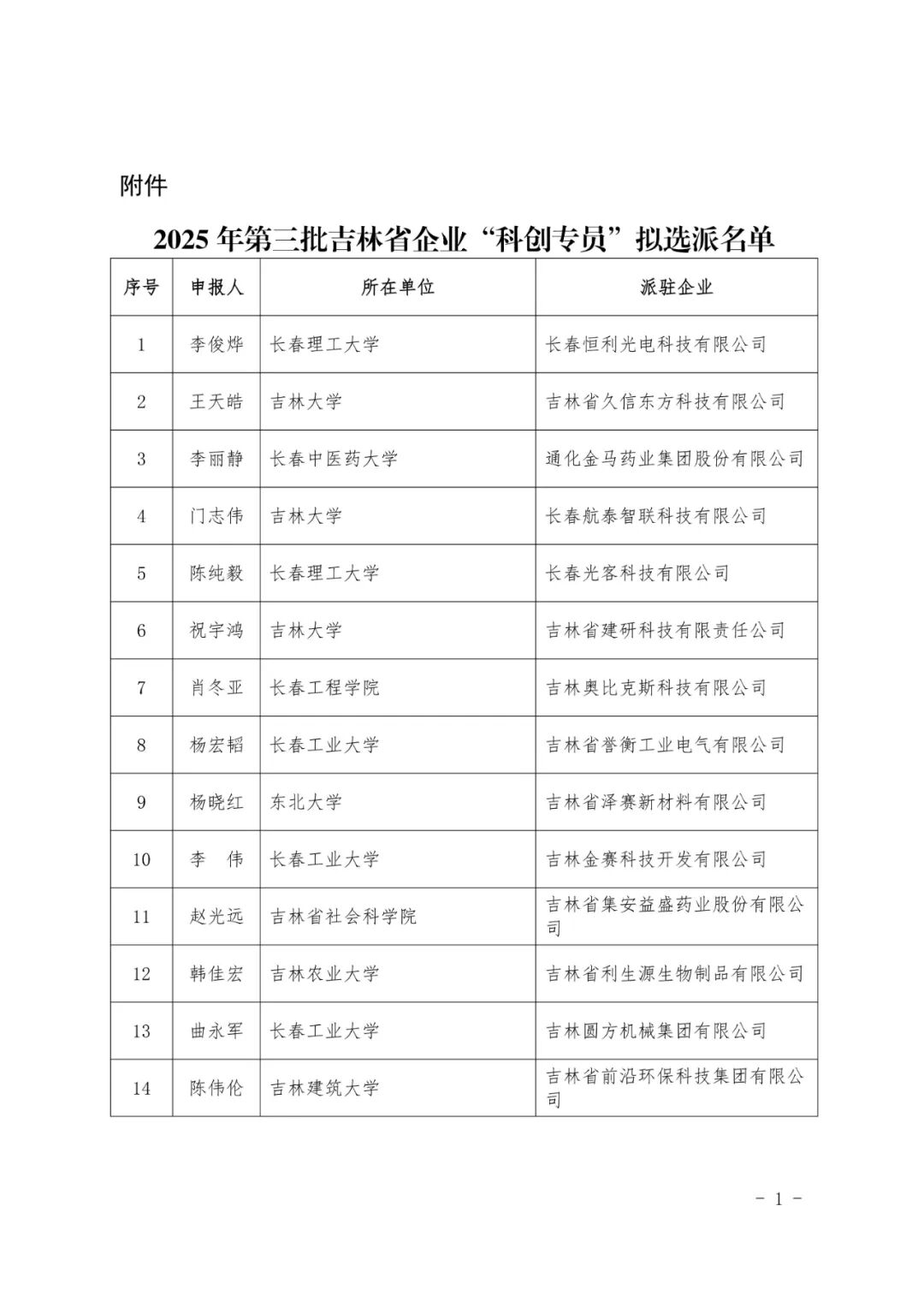 附件:2025年第三批吉林省企业“科创专员(科创副总)”拟选派名单