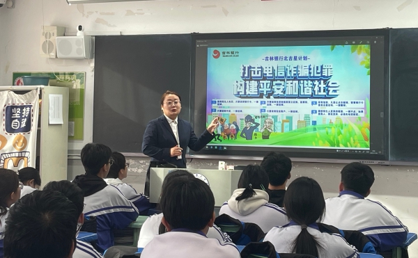 吉林银行长春东盛支行走进长春市第六中学,开展了以“打击电信诈骗犯罪 构建平安和谐社会”为主题的教育课。通过生动的案例分析和实用的防范技巧讲解,帮助学生全面认识电信网络诈骗,增强自我保护意识。活动还鼓励学生化身“家庭反诈小卫士”,将所学传递给家人,共同守护家庭财产安全。