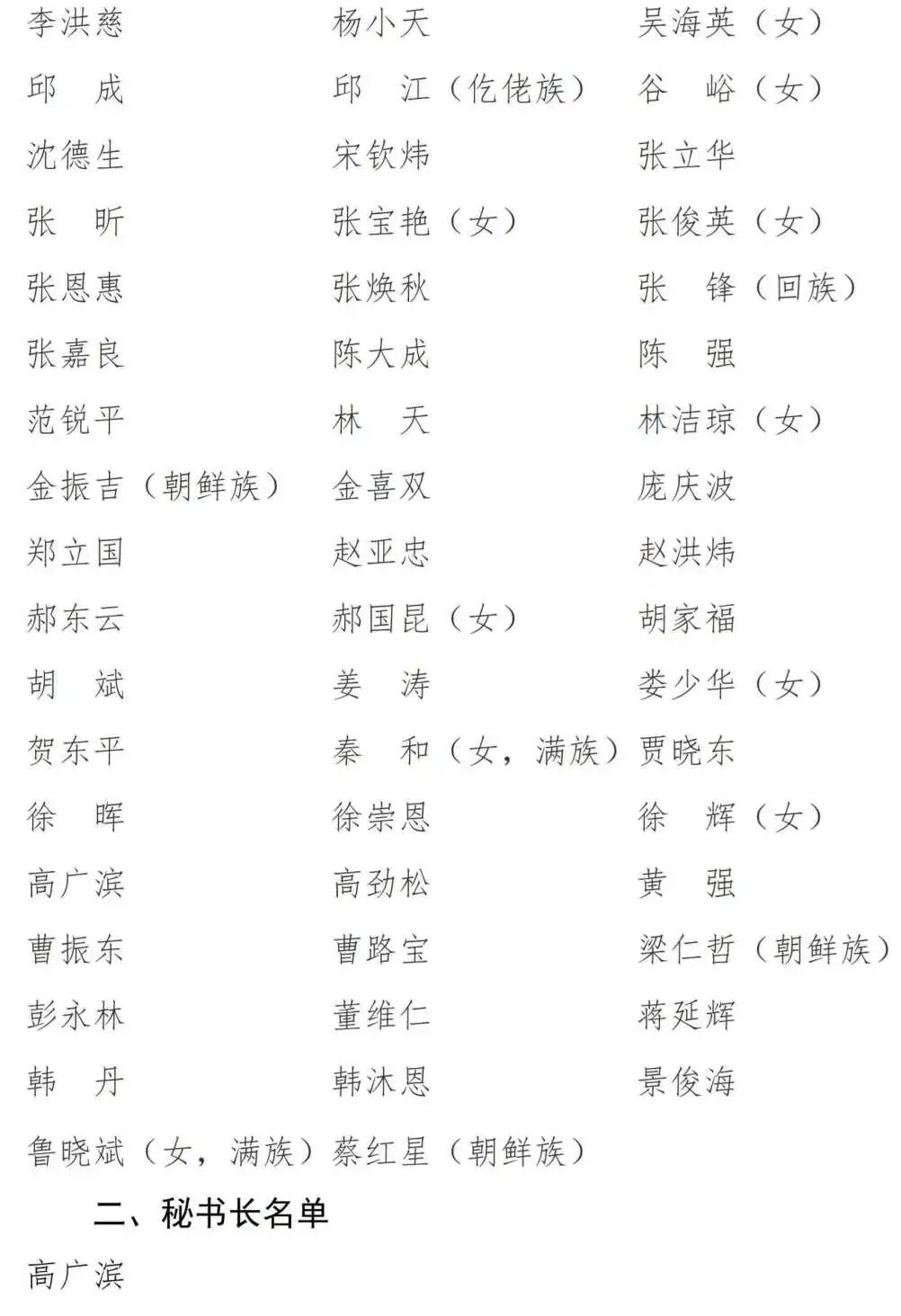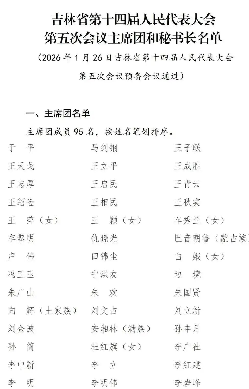 吉林省第十四届人民代表大会第五次会议主席团和秘书长名单