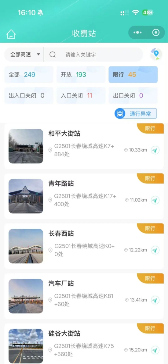 全省249个高速公路收费站