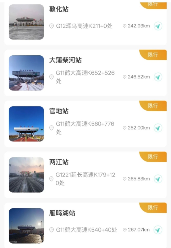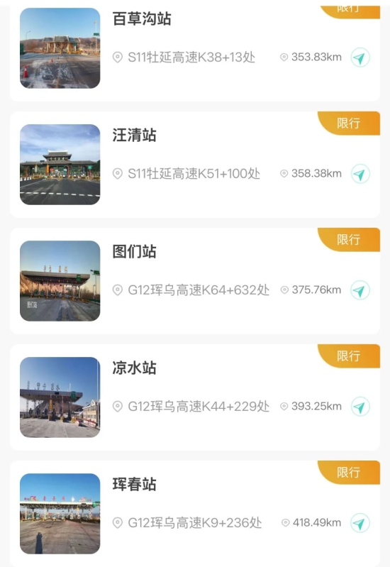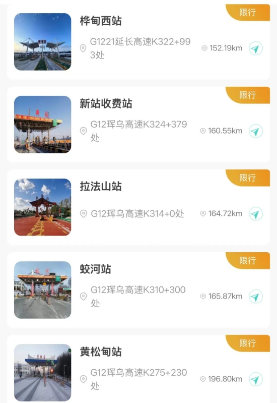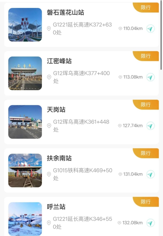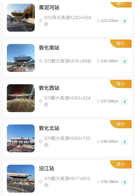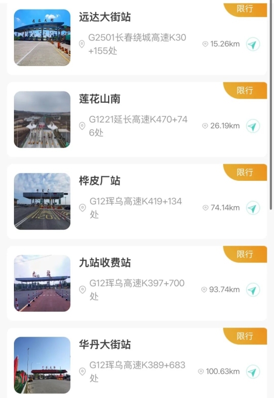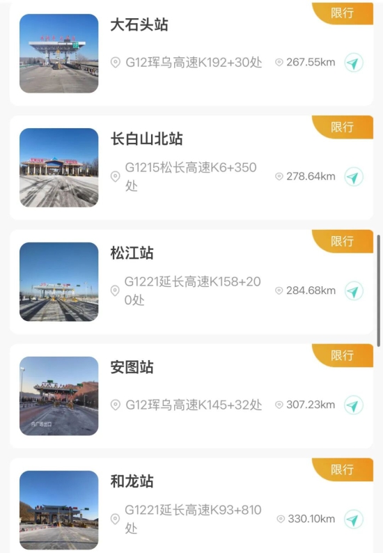 【入口关闭收费站】吉林北站、金珠站、大口钦站、吉舒站、舒兰站、水曲柳站、桦甸东站、舒兰平安站、红石站、老金厂站、夹皮沟站