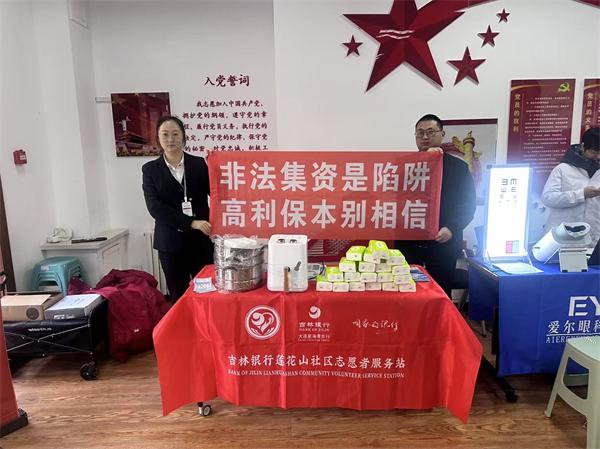 为守护百姓“钱袋子”,吉林银行大连分行打出一套“组合拳”。1-2月,辖内8家网点全员变身“防非卫士”,以“非法集资是陷阱,高利保本别相信”为主题,线上线下齐发力,让防非知识“出圈”又入心。