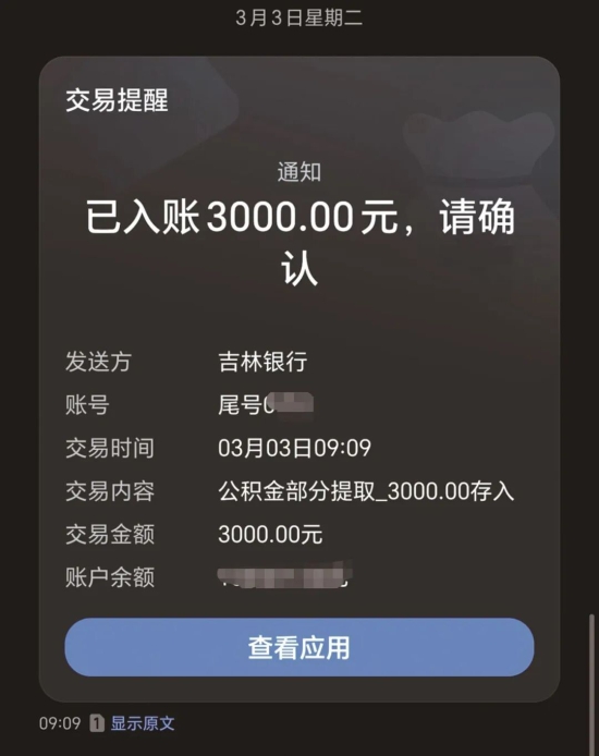 公积金提取交物业费到账 受访者供图