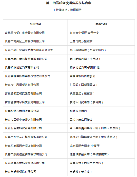 2.“长春品质餐饮消费券”活动商家为美团平台中部分企业(仅限到店使用,可用商户以活动页面【用券专区“品质餐饮”】一栏展示的商户为准)。