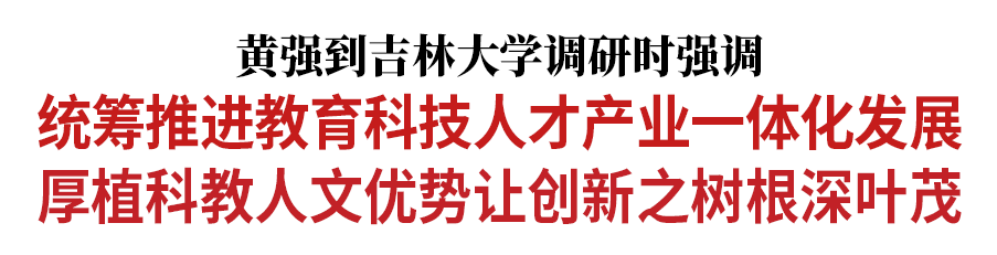 调研中,黄强强调,推动吉林全面振兴和高质量发展,需要吉林大学等高等院校、科研院所发挥更大作用。要落实立德树人根本任务,进一步加强学校思政课教育,传承弘扬中华优秀传统文化,引导学生把热爱祖国作为立身之本、成才之基。要聚焦高等教育持续普及的大趋势,推动学校专业设置、学生知识结构同社会就业结构相匹配,积极开展各类文体活动,促进学生身心健康发展。要深入开展树立和践行正确政绩观学习教育,引导党员干部更重实学实绩、不重“头衔”“帽子”,积极投身经济建设主战场,努力攻克更多“卡脖子”难题,真正把论文写在吉林大地上、写在创新实践中。要结合长春大冬会火炬传递等活动,大力宣传吉林大学的“大家”“大师”,激励广大师生勇担使命、接续奋斗。