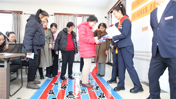 案例宣讲后,活动进入趣味互动游戏环节。“稳球避坑”挑战赛中,居民手持乒乓球灵活避开通道内的“金融陷阱”孔洞,将抽象的金融风险转化为看得见的障碍;随后的“守护血汗钱”闯关赛则要求居民拎着“血汗钱”道具袋,在15秒内避开地贴上的陷阱标识抵达终点。两项游戏将防骗要点融入手眼协调与限时挑战之中,让居民在“玩中学、学中乐”。成功闯关的居民现场分享防范要点,有的高喊“冒充公检法是诈骗,绝不转钱”,有的强调“高收益理财全是坑”,现场笑声与掌声不断,金融安全知识在轻松氛围中深入人心。