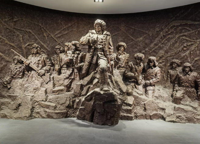 抗联群雕再现了杨靖宇将军指挥东北抗联奋战于白山黑水的烽火岁月