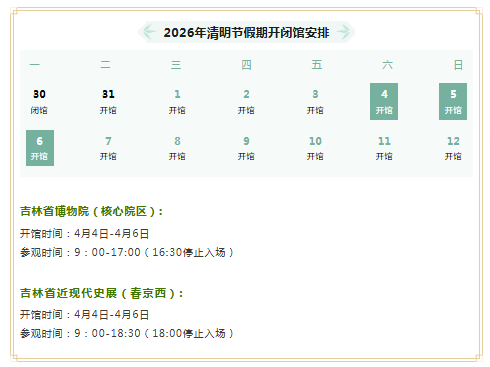 吉林省博物院2026年清明节期间不闭馆