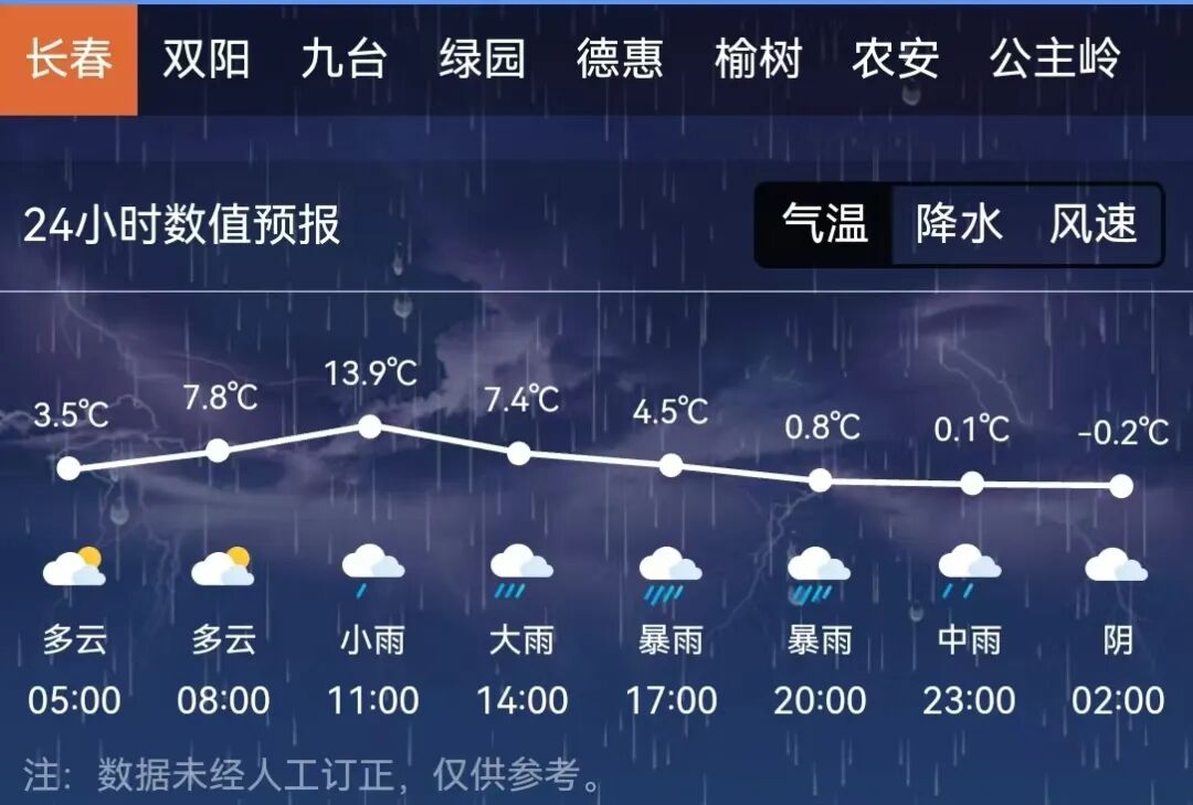 全市平均雨雪量15~20毫米。其中,公主岭、市区、九台、双阳雨雪量15~25毫米,农安、德惠、榆树雨雪量7~15毫米,降水主要集中在4月3日午后到前半夜,4月3日23时后,降水相态由雨转雨夹雪,4月4日05时前后全市降水基本结束。