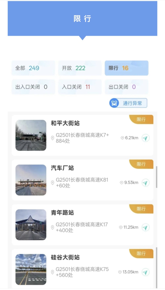 吉林省249个高速公路收费站