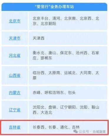 据中国铁路消息,4月8日起,铁路部门 “爱宠行” 服务全新升级,提供“携宠出行”与“爱宠单独行”两种托运模式,办理宠物托运业务的高铁站扩至121座、列车增至228趟。目前,我省四个车站(长春西、长春、通化、吉林)可以办理。