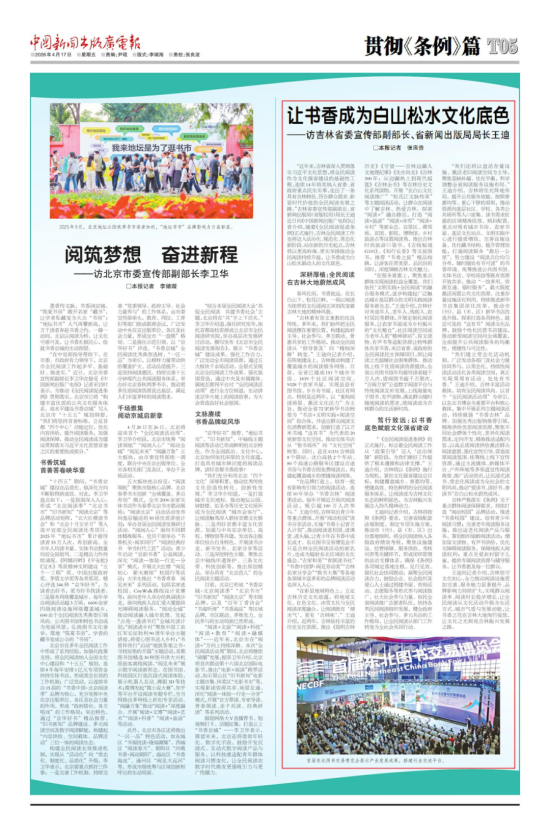 王迪向记者介绍,吉林坚守文化初心,全力推动阅读设施更加完善、服务能力显著提升、品牌影响力持续扩大,实现群众阅读率、阅读时长稳步增长,让全民阅读从文化活动升级为生活方式、城市气质与发展动能,让书香之花在吉林大地绚烂绽放,让文化之光照亮吉林振兴发展之路。