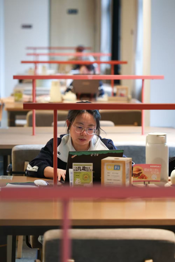 ▲市民在长春市一家书店自习(4月16日摄)