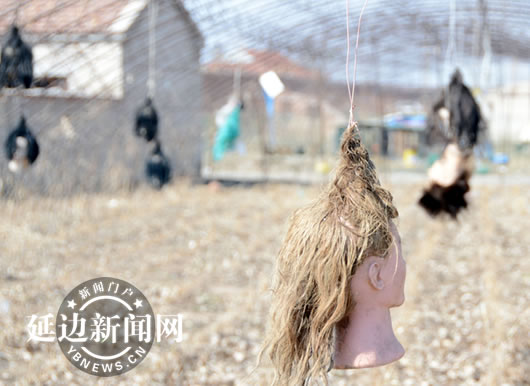 该网友说,他家在大棚架子附近也有一块地。10日,他和女友开车去看自家的地,结果车刚一拐弯就看到这些披头散发在大风中飘动的“人头”,当时把女友吓坏了。