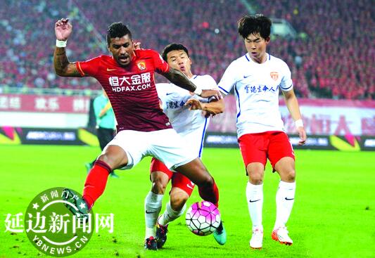 上半场比赛,延边队依靠严密的防守化解了恒大队一次又一次的进攻,直到补时阶段,恒大队利用一次任意球机会,由8号保利尼奥打入一球。