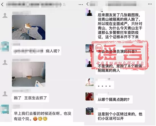 16日,微信上一张病房墙壁被挖洞,病人不见了的照片在网上热传。随后有网友称,武汉市青山区跑了8个新冠肺炎确诊病人。