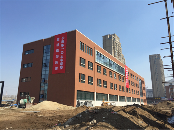 中国吉林网3月15日讯(记者 郭美佳)14日,中国吉林网记者报道了103中小学“南部校区”今年秋季开始招生,南部新城周围的老百姓都感到欢欣鼓舞,终于有一所优质教育资源的学校进驻南部新城。15日,记者前往103中小学“南城校区”实地探营,三栋四层楼外观美化已经完成,目前正在进行操场装饰美化工程。