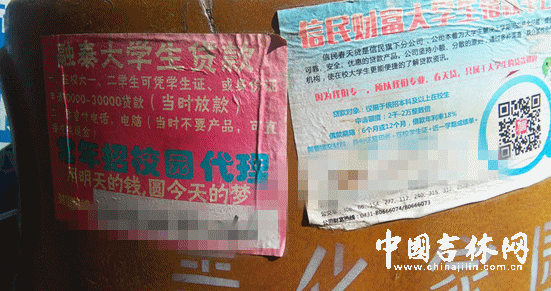 大学校园,原本是一个宁静纯洁的地方。然而眼下的长春部分大学校园里,大量信贷广告,疯狂“入侵”。